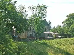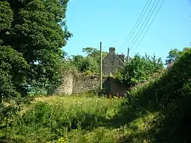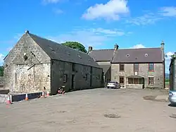 The ancient mansion or castle[3] of Kersland stood on Easter (now 'East') Kersland Farm. The remains of the 'L-Plan' tower has been built into the farmhouse. The barmkin wall survives and has a surviving strong defensive corner tower.[4] Paterson records that the house was almost entirely pulled down by the feuar, Robert Ker.[5] The remaining two barrel vaulted chambers, later used as a dairy and stable, with walls 8 ft thick, until recently formed part of the offices attached to East Kersland.