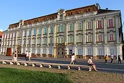 In 1885–1886, French-born architect Jacques Klein removed the Baroque elements of the building. His interventions primarily concerned the facades of the building and are decisive to this day in the appearance of the building. Also then, the wing separating the inner courtyards was demolished.[4]