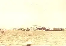 At the end of the 19th century, the station and its warehouses underwent expansion works, due to fears that the Cacilhas branch line, which was being planned at the time, would lead to a reduction in rail traffic.[22] Still, at the beginning of the 20th century, the Barreiro station had several structural problems, such as the river docks having no protection and suffering frequent flooding on rainy days.[22] This meant goods had to be loaded and unloaded on a small pier, with only two steam cranes, and stored in a warehouse that was very small.[22] In addition, this infrastructure also served for the unloading of coal, rails, and other materials, to the general warehouses.[22] To make the most of the available space on the ships, refills and small-speed goods were transshipped in the same place, generating several misplacements and other irregularities in the service.[22] The river wharves and railway lines lacked proper identification, which further complicated operations.[22] These deficiencies made the management of the terminal more expensive, which was reflected in the prices charged to customers.[22] Due to the limited space available on the site, only small expansions, such as the installation of new cranes, could be made, which failed to solve the station's problems.[22] On the other hand, navigation near the station was difficult, as the water being shallow in certain places.[36]