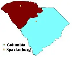 Congress made a more explicit effort to subdivide the District of South Carolina on March 3, 1911, by 36 Stat. 1087, 1123.[3] South Carolina was again subdivided into Eastern and the Western Districts, with one judgeship authorized to serve both districts, effective January 1, 1912.[3] Congress finally authorized an additional judgeship for the Western District, and assigned the sitting judge exclusively to the Eastern District, on March 3, 1915, by 38 Stat. 961.[3] However, on October 7, 1965, by 79 Stat. 951, South Carolina was reorganized as a single judicial district with four judgeships authorized for the district court.[3] It has since remained a single District.
