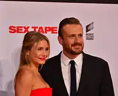 Sex Tape is a 2014 American sex comedy film directed by Jake Kasdan and distributed by Sony Pictures Releasing. It was written by Jason Segel, Nicholas Stoller, and Kate Angelo and stars Segel, Cameron Diaz, Rob Corddry, Ellie Kemper, and Rob Lowe. Its story follows a married couple who make a sex tape to spice up their relationship only to wake up the next morning to find that it has gone missing. This sparks a frantic search in an attempt to find it.