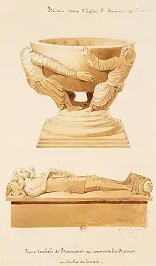 In 1851–1852, architect Hippolyte Béziers-Lafosse oversaw a restoration campaign that included rebuilding the west façade and south arm openings according to the design of the original bays.[6] Victor Ruprich-Robert continued the restoration effort from 1855 to 1864. In 1862, the building was designated a historic monument.[15] The north transept and façade underwent restoration in 1907. In 1954, the church was bestowed the title of minor basilica to acknowledge the veneration of Notre-Dame des Vertus's relief from the Couvent des Cordeliers in the town.[16]
