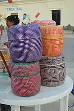 Despite the interest in documenting handcraft traditions, no complete pieces from before the 1960s remain.[1] Although not as popular as other handcraft traditions, basketry can be found all over Mexico, especially in indigenous communities in Oaxaca, Chiapas and Veracruz,[4] with many created for collectors.[1] However, a number of basketry items are still make for local use, such as a cradle used by indigenous women in the Sierra Norte of Puebla, and pieces created for ceremonies in various parts of Mexico,[1][5] such as special baskets created by the Seri in Sonora and the Nahuas in the Huasteca region for Day of the Dead.[5]
