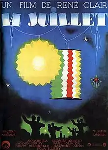Bastille Day or July 14 (French: Quatorze Juillet) is a 1933 French romantic comedy film directed by René Clair and starring Annabella, George Rigaud and Raymond Cordy.[1] It was made at the Epinay Studios by the French subsidiary of the German company Tobis. The film's art direction was by Lazare Meerson.