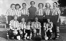In June, 1920, the first record of any women's team in Bath was formed as simply; "Bath Ladies Football Club". With The Bath Chronicle at the time stating: "Enthusiastic reception of the proposed club, many ladies have shown their wish to join." Application's for squad entry were received from places as far as Gloucester, Bristol and the Isle of Wight. It was suggested by Chairman Mr Hopkins that the colours ought to be the same as the men's; black and white jerseys, with black shorts, black stockings, white rings, and black woolly caps.[2] A year later In 1921, Bath City Ladies played at Old Trafford in front of 31,000 to raise money for unemployed ex-servicemen in Manchester.[3] The fixture raised £2,000 for the fund to help returning soldiers from the World War 1. On Saturday 28 April 1921, the womens team played Southampton Women's in front of 12,000 at Bristol.[4] However, in the same year, The Football Association banned women's football because the Association felt the physicality of the game was; “unsuitable for women”.[5] Women's football suffered for decades but it was reintroduced around the mid-century and has since progressed significantly.[6]