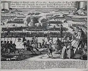 The Battle of Kagul[1][6] or Cahul (Russian: Сражение при Кагуле [Battle of the Kagul], Turkish: Kartal Ovası Muharebesi [Battle of the Eagle Plain]) occurred on 1 August 1770 (21 July 1770 in Julian Calendar) during the Russo-Turkish War of 1768–1774. It was the decisive and most important land battle of the war and one of the largest battles of the 18th century.[7] It was fought in Moldavia, near the village of Frumoasa (now Cahul, Moldova), nearly a month after the Russian victory at Larga.