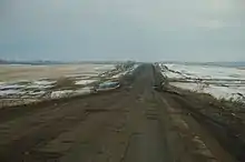 The Debaltseve to Bakhmut highway, surrounded by open steppe.