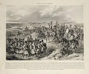 - Liptay brigade: 4 companies of the Tyrolian jägers, 1 sapper company, 1 howitzer cavalry battery, 2 Congreve rocket launching racks;[20]
