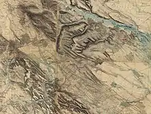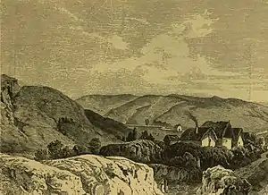 Being shallow, this creek usually did not represent an important barrier for anybody, but the heavy snowfalls and rains from the beginning of April 1849 changed this situation completely, making its banks marshy and its riverbed sludgy, which made its crossing very difficult, except through the bridges laying in Isaszeg, Gödöllő and at a couple of hundred meters north from the latter locality. East to Gödöllő, until the monastery of Máriabesnyő, and south from it, lies a depression, continued, towards the Galga valley, by the deep valleys of the Aranyos and Egres creeks. The stream of the Rákos is accompanied from both sides by gently sloping flat-topped hills, which become high and abrupt only on its right bank, right in front of Isaszeg, rising considerably above the village, the wide valley, with accidented terrain, and the woody highland, which lie west from it. The region east of the monastery of Máriabesnyő and Isaszeg was covered by woods, called in 1849 Királyerdő (the King's Wood), which encircled Isaszeg semicircularly. Királyerdő was a 14,000 paces long, well-managed, easy-to-cross forest, with many clearings, having its narrowest portion, along the Isaszeg-Dány road, around its middle 1200 paces, and at Alsó malom (Lower Mill) around 4000 paces, being on its southern end even wider. The wide vineyard on the northern end of Királyerdő, as well as the deer park southeast from Gödöllő, were also important natural shelters for the combatants on the left bank of the Rákos. Despite being more fragmented than those from the left bank, the heights on the right bank of the Rákos were unforested, thus they were harder to hide the troops' movements.[14]
