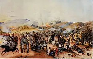 The Battle of Isaszeg (6 April 1849) took place in the Spring Campaign of the Hungarian War of Independence from 1848 to 1849, between the Austrian Empire and the Hungarian Revolutionary Army supplemented by Polish volunteers. The Austrian forces were led by Field Marshal Alfred I, Prince of Windisch-Grätz and the Hungarians by General Artúr Görgei. The battle was one of the turning points of the Hungarian War of Independence, being the decisive engagement of the so-called Gödöllő operation, and closing the first phase of the Spring Campaign.