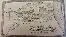 Wilkinson marched northwards from Plattsburgh to attack this outpost on 27 March 1814. His force consisted of 4,000 men organised into three brigades, with 11 pieces of artillery. The march was delayed by deep snow and mud, and he was not able to occupy Odelltown until 30 March, and begin the attack on Lacolle Mill until the early afternoon.[7]