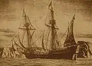 Five of the Levant company's ships left London in November 1585 – the 300 ton galleon Merchant Royal (being head of the fleet) under 'acting Admiral' Edward Wilkinson and the William and John were bound for Tripoli and the Toby for Constantinople. The Susan and the 300 ton armed merchant galleon Edward Bonaventure were bound for Venice. After completing their trading ventures, the ships met at Zante (Zakynthos) and after provisioning for the voyage home they set out together.[12]