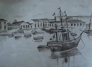 As the "Casa Fuerte" remained the last resort of the defenders right at the river, the Republicans decided to attack with heavy artillery from the hill of the Encarnación.[1]: 42 Having seen the shelling the French auxiliaries and General Vegas' Mexicans thus evacuated themselves to the ships[3] and sailed to Laguna.[5] The fleeing garrison left big amount of supplies behind among these were two pieces of 68-pound artillery, one 12-pound and 4-pounder culverins, an 8 pounder cannon and its rotating platform, three small 2-pounder pieces, 90 firearms with bayonets, 8 lances, 77 cans of shrapnel, a barrel of grenades and five horses.[1]: 44