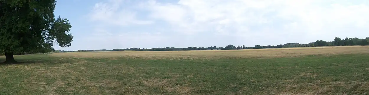 Klapka attacked Tápióbicske, where he thought to find only minor units with the Dipold brigade as the vanguard, supported by the Bobich brigade and 4 companies of the Koburg hussars, while the rest of the corps (the Sulcz and Zákó brigades and the cavalry division led by Colonel Arisztid Dessewffy) remained in reserve on the shore of the Tápió river.[12] Klapka sent envoys to inform Damjanich and Görgei about his action.[12] The vanguard crossed the Tápió river on the unprotected bridge, then repulsed the weak Croatian vanguard, found on the other side of the river, which retreated northwest from Tápióbicske,[16] The Hungarians deployed on the sand dunes along the road which led to Tápióbicske. Klapka sent envoys to inform Damjanich and Görgei about his action.[12] Only when the Hungarians started to shoot with their cannons Tápióbicske, learned Major General Daniel Rastić about their presence. The latter quickly ordered his troops to prepare for the battle, but to win them some time for this, he sent the 6 companies of Croatian banderial hussars in attack, then deployed his 6-pounder battery, under the protection of the Ogulin-Slunj border guard battalion, on a hill which laid 1000 paces northwest from the village.[12] Meanwhile, the Dipold brigade repulsed the attack of the Banderial Hussars, which retreated behind the village, then entered Tápióbicske, which they thought unoccupied by the enemy,[12] in tight company columns.[5] But here they were caught by surprise by the crossfire[17] (or a bayonet charge) of two Otočac battalions, hidden among and in the houses of the village and suffered heavy losses.[12] When the Croatians appeared at the back of the Hungarians, closing their way of retreat, Captain Dénes Bég took the lead of the battalions and attacked the Croatian battalion attacking from behind, breaking the encirclement, and running out from the village Although, initially, the Hungarian retreat was ordered, the close pursuit of the enemy caused panic among the soldiers,[16] who started to retreat in disorder towards the Tápió bridge.[17] The soldiers of the fleeing Dipold-brigade ran into the Bobich-brigade which had just crossed the river and deployed its horse battery, causing disorder and panic among them. Their infectious panic routed Bobich's infantry and artillery as well, then also the Sulcz and Zákó brigades, which were waiting in the reserve outside of Tápióbicske.[18] Because of the frequent rains in the last few days, the water of the, usually shallow river was swollen, and many soldiers, who, instead of the crowded bridge, tried to cross Tápió by swimming, drowned in the marshy waters. Two of the 12-pounder cannons, which they tried to bring over the river, sunk, while 5 were captured by the enemy.[16] The Hungarians also lost an entire battery because the gunners were confused by the attacking enemy infantry with theirs, due to them having the same color uniforms.[17]