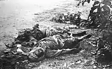 Furious and frustrated, Aitken ordered a general withdrawal.[15] In their retreat and evacuation back to the transports that lasted well into the night, the British troops left behind nearly all their equipment. "Lettow-Vorbeck was able to re-arm three Askari companies with modern rifles, for which he now had 600,000 rounds of ammunition. He also had sixteen more machine guns, valuable field telephones" and enough clothing to last the Schutztruppe for a year.[16] On the morning of 5 November, Force B's intelligence officer—Captain Richard Meinertzhagen—entered Tanga under a white flag, bringing medical supplies and carrying a letter from General Aitken apologizing for shelling the hospital. The streets of Tanga were strewn with dead and wounded. German doctors and their African orderlies worked tirelessly and "with a fine disregard for their patients' uniforms."[2]