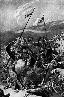 ![]() Bohemond of Taranto in battle. 19th century impression by Gustave Doré. | |||||||