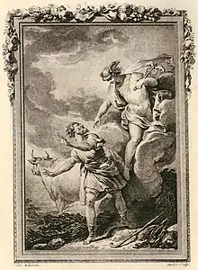 Hermes turns Butte to stone ." Engraving by Antoine - Jean Duclos of 1767 for Ovid 's Metamorphoses