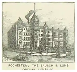 In 1853, John Bausch and Henry Lomb, both German immigrants, established a small but ambitious workshop producing monocles in Rochester, New York.[12][13] By 1861, their operation had expanded to manufacturing vulcanite rubber eyeglass frames and other precision vision products.[14]