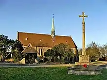 The Parish Church of St Mary stands about a quarter of a mile north of the village;[2] the present building dates from 1870. It was rebuilt close to the site of the old church, which was first mentioned in 1222. A 15th-century font and some 16th- and 17th-century monuments to the Knighton family have been preserved. The ornithologist William Yarrell, admired by his contemporaries for his precise scientific work, is buried in the churchyard.