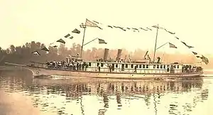 In the week of June 1, 1911, Bayocean was used as the flagship for the Oregon state championship swimming races, to be held Friday, June 9, at a course in the Willamette Riverof the dock of the Portland Railway, Light, and Power Company, upriver from the Hawthorne Bridge.[19] The races, which were sponsored by the Multnomah Amateur Athletic Club, were scheduled to start at 2:00 pm, with Bayocean picking up the board of directors of the club, and their wives and friends at 1:00 pm at the Joseph Supple dock, and then proceeding to a position along the race course.[20]