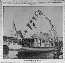By late July 1912, large crowds of people were taking the train to Garibaldi to reach the Bayocean resort.[29] To accommodate the crowd, the resort organized a ferry service to carry people from Garibaldi across the bay to Bayocean.[29] According to one non-contemporaneous report, Bayocean was used as a ferry between Garibaldi and the resort.[14] However, a more timely account states that the yacht was too big to maneuver well in the shallow waters of the bay.[29] Instead the task of ferrying was assigned to the much smaller yacht Henrietta (28 feet long, passenger capacity: 30), brought in from the city of Tillamook and operating under Captain Emmett Jenkins.[29][30]