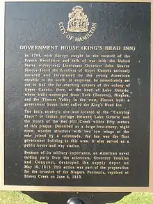 The first aboriginals to settle in the Hamilton area called the bay Macassa, meaning "beautiful waters".[1] It was not until bridges were built, the marshes drained and a canal cut through the bar that Hamilton started to expand. Before that its chief importance was as a military station, guarding Burlington Heights and the head of the lake.[2]