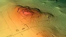An extinct volcano, in Whitwick, 4 miles (6 km) to the west, was responsible for the fine-grained igneous rocks that the hill consists of. Beacon Hill was the site of a Bronze Age hill fort. Today a toposcope indicates landmarks which can be seen from the summit. These include Lincoln Cathedral and the hills of the Peak District.