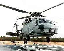 In April 1967, the beartrap was cleared for service, having been deemed suitable for both day and night operations to 30 degrees of roll and nine degrees of pitch up to Sea State 6.[6] The CH-124 Sea King was the first Royal Canadian Navy helicopter to be operationally equipped with this system.[7][8] Canada's Sea King replacement, the Sikorsky CH-148 Cyclone, which entered service in June 2015, is also outfitted to work with the beartrap.[6]