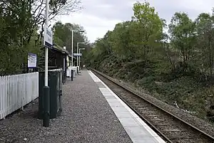 Beasdale railway station is a railway station serving Glen Beasdale in the Highland region of Scotland. This station is on the West Highland Line, sited 28 miles 49 chains (46.0 km) from the former Banavie Junction, between Lochailort and Arisaig.[5] ScotRail manage the station and operate all services.