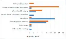 The Domesday book census taken in 1086 indicates that there were 21 villains ('peasants', bound to the Lord of the Manor), 5 Sokemen (freemen enjoying extensive rights over land) and 2 servants.[15] The first census in 1801 simply divided people into those involved in agriculture and those in trade and manufacturing. It was only in the 1841 census that first gathered occupational data.[16] According to occupation data reports published in 1881, of Beeby's 108 inhabitants, the majority of males worked in agriculture and females in domestic service.[17] The children of this parish would have attended school in Barkby's Public Elementary School, about 2 miles to the west of Beeby and still do in the present day.[18] Many of Beeby's residents at present work in agriculture and retail, commuting to Leicester for work.[19] The nearest train stations to Beeby are Syston (3.19 miles away) or Leicester (5.09 miles away).[20] Nearby food sources include Picks Organic Farmer & Grower Farm Shop, Gamble and Hollis Butchers, with the large supermarket chains in Leicester.[21]