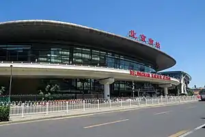 Beijingnan (Beijing South) railway station (Chinese: 北京南站; pinyin: Běijīngnán Zhàn) is a large railway station in Fengtai District, Beijing, about 7.5 km (4.7 mi) south of central Beijing, between the 2nd and 3rd ring roads. The station in its present form opened on 1 August 2008 and mainly serves high speed trains.