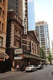 The first musical to play the Belasco in the 2000s was James Joyce's The Dead.[213][214] This was followed by the musical Follies in 2001[213][215] and Frankie and Johnny in the Clair de Lune in 2002.[216][217] As part of a settlement with the United States Department of Justice in 2003, the Shuberts agreed to improve disabled access at their 16 landmarked Broadway theaters, including the Belasco.[218][219] There were two short productions in that year: Enchanted April and Six Dance Lessons in Six Weeks. More productions followed later in the 2000s, including Dracula, the Musical, Julius Caesar, Awake and Sing!, Journey's End, Passing Strange, American Buffalo, and Joe Turner's Come and Gone.[135] During the production of Awake and Sing! in 2006[220] and Joe Turner's Come and Gone in 2009, the theater was leased by Lincoln Center Theater.[221]