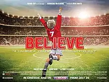 Believe is a 2013 British sports drama film directed by David Scheinmann. Set in Manchester in 1984, it stars Brian Cox as legendary Scottish football manager Sir Matt Busby, who comes out of retirement to coach a team of young working-class boys captained by the talented but unruly Georgie Gallagher (played by Jack Smith).[1] The film also stars Natascha McElhone as Erica Gallagher, Anne Reid as Jean Busby and Toby Stephens as Georgie's prospective headmaster.[5]