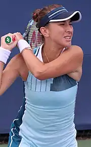 This is a list of the main career statistics of professional Swiss tennis player Belinda Bencic. She has won eight singles and two doubles titles on the WTA Tour.[1] She made her breakthrough at the age of 18 when she won her first WTA title, the Premier Eastbourne International,[2] and later that year her first WTA 1000[lower-alpha 4] title at the Canadian Open.[3] In 2019, she won her second WTA 1000 title at the Dubai Championships.[4] She was also the US Open semifinalist in 2019.[5]