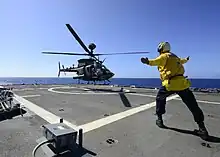 OH-58D of 2nd Squadron, 6th Cavalry Regiment, landing on USS Lake Erie