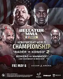 3. "Ryan Bader vs. Cheick Kongo heavyweight title fight set for May 6 in Paris". MMA Junkie. 2022-01-30. Retrieved 2022-01-30.