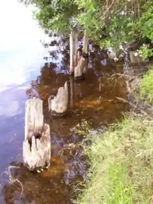 Many of the pile driven vertical timber posts or Dumble Tank Stops are still visible; however are slowly succumbing to the elements. Two concrete tetrahedrons have been relocated to the Ken Lambkin Reserve to form a memorial, and sit on the southern bank of the creek mouth.