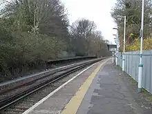 Belmont railway station serves the village of Belmont in the London Borough of Sutton in south London. The station is located on the Epsom Downs line and is in Travelcard Zone 5. It is 16 miles 1 chain (16.01 miles, 25.77 km) down the line from London Bridge measured via West Croydon.[3] It is the closest station to the Royal Marsden Hospital, which is just under half a mile away. On 19 January 2023, Sutton Council were granted £14,121,979 from the government to add a turnback siding to the south of the station to increase capacity to let services run at 4 tph instead of the current 2 tph service pattern.[4][5][6]
