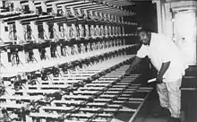 Technician Thadius Harrell installing a new main distribution frame at the Center in 1998