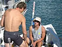 Fogle and Cracknell before the start of the 2005 Atlantic Rowing Race