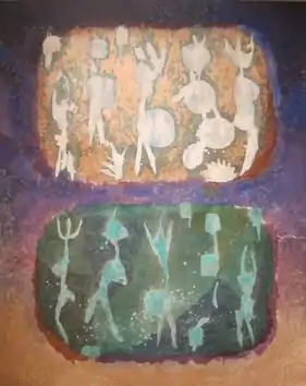 Ben Norris painted primarily landscapes, and a few still lifes, in the 1930s and 1940s. In the early 1950s, the landscapes became more abstract, and most of his work was completely abstract by the late 1950s. In the mid-1960s, he turned to semi-abstract figurative work. His paintings from the 1970s include Geometric abstraction, nudes, and lush Hawaiian landscapes. He continued painting these lush tropical landscapes into the 21st century.[2] He is best known for his watercolor landscapes (such as The Other Edge of the Clearing) and abstract compositions with a strong Japanese influence, such as Shadow Play. Among public collections holding works by Ben Norris are the Hawaii State Art Museum, the Honolulu Museum of Art, the Isaacs Art Center in Waimea, Hawaii, the Smithsonian American Art Museum (Washington, D.C.) and the Oregon State University Memorial Union (Corvallis, Oregon)