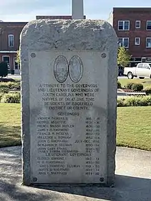 The Edgefield District was known as a violent place, even by the standards of antebellum South Carolina,[5] where matters of personal honor might be addressed with a killing or duel.[6] Before Tillman Sr.'s death from typhoid fever in 1849, he had killed a man and been convicted of rioting by an Edgefield jury. One of his sons died in a duel; another was killed in a domestic dispute. A third died in the Mexican–American War; a fourth at the age of 15 from disease.[3][7] Of Benjamin Jr.'s two surviving brothers, one died of Civil War wounds after returning home, and the other, George, killed a man who accused him of cheating at gambling. Convicted of manslaughter, George continued to practice law from his jail cell during his two-year sentence, and was elected to the state senate while still incarcerated.[7][8] He later served several terms in Congress.[9]