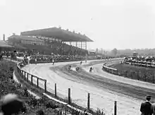Benning Race Track was a horse racing and motorsport venue that opened in 1890 on the east side of Washington, D.C. With the close proximity to the capital, the races were attended by many politicians. A journalist once took a photo of Alice Roosevelt Longworth placing a bet, much to the chagrin of her father Theodore Roosevelt, who suppressed the sale of the photos to the newspapers.[1] Famous jockey Walter Miller won all five races during a Benning meet in 1906. The track operated until Congress banished horse racing in the District in 1908. The last race day was April 12 of that year and the grandstand burned in 1915.[2]