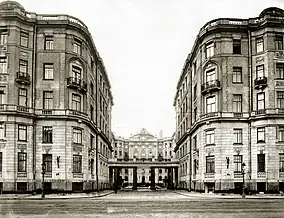 Many famous people of St. Petersburg lived in the Benois House (composers, artists, writers, scientists, architects, actors, state leaders, military leaders of the USSR).[9] Among them: Prince Gabriel Constantinovich of Russia, Konstantin Makovsky, Boris Fredman-Kluzel, Andrei Mylnikov, Evgeny Kibrik, Alexey Parygin, Lyudmila Sergeeva, Vladimir Kachalsky, Boris Babochkin, Georgi Vasilyev, Evgenija Zbrueva, Nikolay Cherkasov, Leonid Lyubashevsky, Vlas Doroshevich, Alexander Prokofyev, Mikhail Chekhov, Alexey Skaldin, Joseph Berlin, Iosif Langbard, Andrew Ol, Natalia Bekhtereva, Alexander Vasiliev, Prince Andrei Grigorievich Gagarin, Rudolf Samoylovich, Yuri Demkov, Mikhail Neiman, Nikita Tolstoy, Sergei Kirov, Grigory Zinoviev, Semyon Voskov, Ivan Gaza, Nikolai Glebov-Avilov, Grigory Yevdokimov, Nikolay Komarov, Alexey Kuznetsov, Otto Wille Kuusinen, Boris Pozern, Eino Rahja, Kustaa Rovio, Georgy Safarov, Pyotr Smorodin, Nikolai Shvernik, Leonid Govorov, Boris Shaposhnikov, Pavel Dybenko, Vladimir Gittis and others.