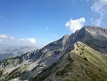 The geographical formations of the region are frequently mentioned in local folklore. According to legend, Tomorr personified a giant who fought his brother Shpirag, personified by a nearby mountain, for the love of a young woman.[11] The two brothers fought bitterly for her affections and ended up killing each other. Deep in sorrow, the legend states, the grieving woman for whom they had contested wept over their deaths; her tears created the Osum river.[9][11][22] She was then said to have turned to stone, becoming the foundation on which Berat Castle is now built.[11] Both Tomorr and Shpirag are visible from the city of Berat.
