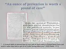 Ramazzini saw prevention as being better than cure. In his Oratio given in 1711, he suggested that "it is much better to prevent than to cure, and so much easier to foresee future harm and avoid it rather than have to get rid of it after having fallen prey".