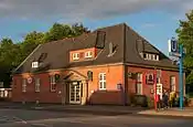 The station was located in a rural environment until the 1950s, when a local community center developed east of the station. Because the main entrance was at Berner Heerweg west of the station, the entranceway was re-built and a second entrance from the east was added, the two entrances linked by a bridge across the U-Bahn tracks. A restaurant can be found in the former station building today.[1]