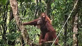 The fauna of the park is rich, with 300 species of bird (25 endemic to Borneo), at least 162 fish species and at least 54 mammals. The park is home to endangered Bornean orangutan and seven other primate species: Müller's Bornean gibbon, white-fronted surili, maroon leaf monkey, southern pig-tailed macaque, crab-eating macaque, Sunda slow loris and Horsfield's tarsier.[3]