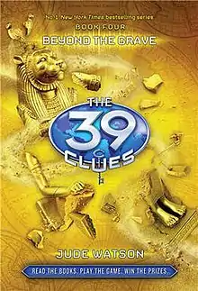 Beyond the Grave is the fourth book in The 39 Clues series first published on June 2, 2009 and written by Jude Watson.[1] Thematically the novel uses Biblical knowledge, prophecy, and spiritual topics to explore the afterlife. Amy and Dan Cahill, the protagonists, travel to Egypt because of a clue they discovered in The Sword Thief.[2] The symbols in the middle of the book translate "Alistair was there the night they died."