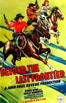 Beyond the Last Frontier is a 1943 American Western film about an undercover Texas Ranger, John Paul Revere, within Big Bill Hadley's gang of crooks. Howard Bretherton directed the film and John K. Butler and Morton Grant wrote the screenplay. The film stars Eddie Dew as Johnny Revere, Harry Woods as Big Bill Hadley, Robert Mitchum as Trigger Dolan, Lorraine Miller as Susan Cook, and Smiley Burnette as Frog Millhouse.